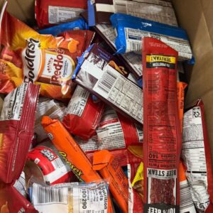 Each pallet includes approximately 24 boxes filled with tasty snacks. Here’s a list of what you can expect to find: